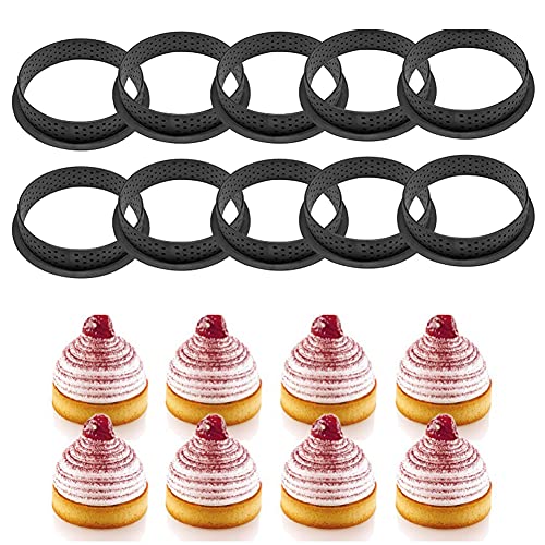 10 stampi per torte a forma di mousse, anello perforato, stampo per torte, forma circolare, taglierino perforato, forma rotonda, utensili per la produzione di mousse Pie Quiche