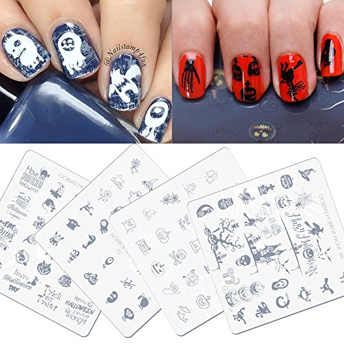 Cici & Sisi Nail Art Stamping Piatti Kit Holiday Halloween-1 timbro piastra Manicure Modello, 4 pezzi