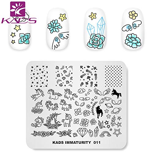 KADS Nail Stamping Plate Childlike Series Cute Colorful Horse Image Nail Art Template Nail Art Stencil DIY Modello Bella Horse Flower Wing (IM011)