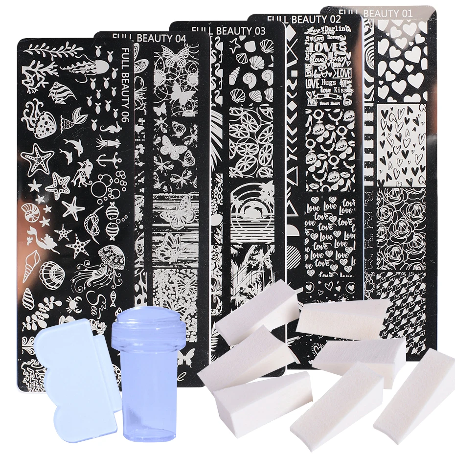 1 Set Nail Art Stamping Plate Tool Kit Nails Flower Fruit Butterfly Design DIY Stamper Stencil Template For Manicure JIFB01-06-1