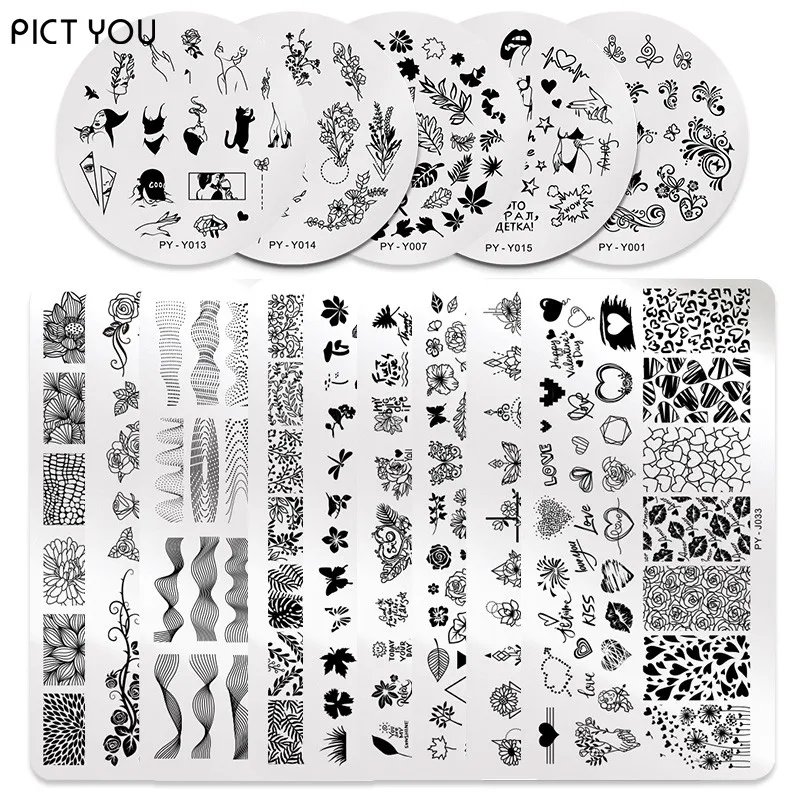PICT YOU Nail Stamping Plates Template Lace Flower Animal Pattern Nail Art Stamp Stamping Image Plate Stencil Nails Tool