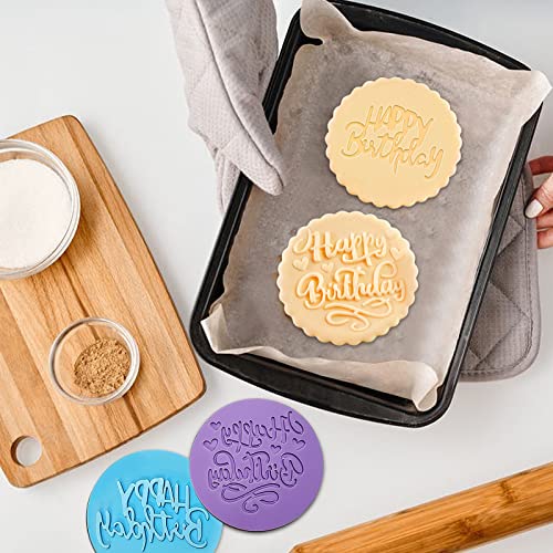 Set di 2 stampini rotondi per biscotti con scritta "Happy Birthday", per pasta di zucchero fondente, per fare biscotti fai da te (A) (A)