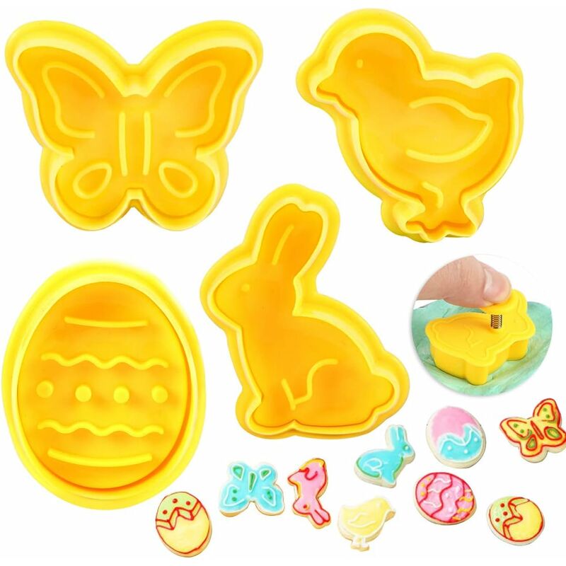 Set di 4 formine per biscotti pasquali: le forme sono carine: coniglietto, farfalla, pulcino, uovo di Pasqua, erano il momento clou della Pasqua. Bellissimi stampini per cuocere un biscotto pasquale. Facile e sicuro da usare, senza spigoli o spigoli vivi, maneggevolezza sicura e piacevole, bellissimi biscotti per bambini facili da tagliare. ;