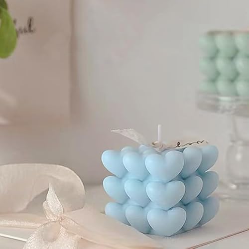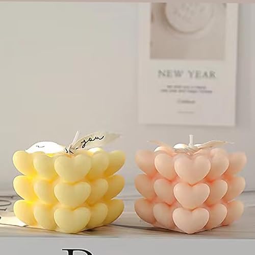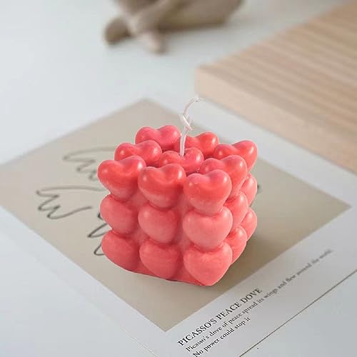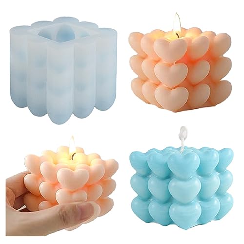 Stampo per candele a forma di cuore di San Valentino, 3D fai da te in silicone per candele, stampi per candele a forma di cuore a bolla a forma di cubo in silicone per la produzione di candele