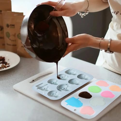 【Set di muffe al cioccolato】 stampi in silicone teschio 2 pezzi, 8 diverse forme di teschi.bella figura teschio unica completa di realistici e belli.Le torte teschi sono già un eye-catcher a qualsiasi festa di Halloween.