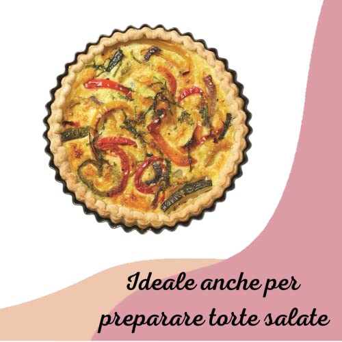 RESISTENTE La teglia è progettata per durar e lungo. Il materiale in alluminio resistente permette allo stampo di non deformarsi e di cuocere la crostata in modo uniforme.