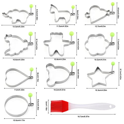 Stampo Per Frittata In Acciaio Inossidabile,Con Manico 10 Diverse Forme Di Stampo 2Separatore Di Albume 2Pennello Per Olio Di Silicone,Adatti Per Friggere Uova Di Diverse Forme Stampo Per Uova Fritte