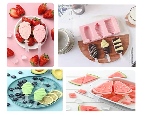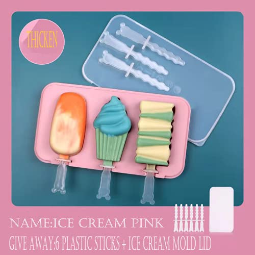 Stampo gelato,Stampi per ghiaccioli,Ghiaccioli silicone per stampi, Stampi per gelato Ogni set di 2 stampi per ghiaccio rosa con 12 bastoncini di plastica riutilizzabili.