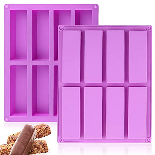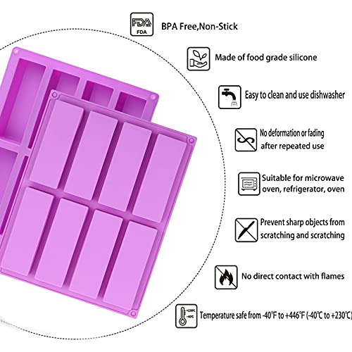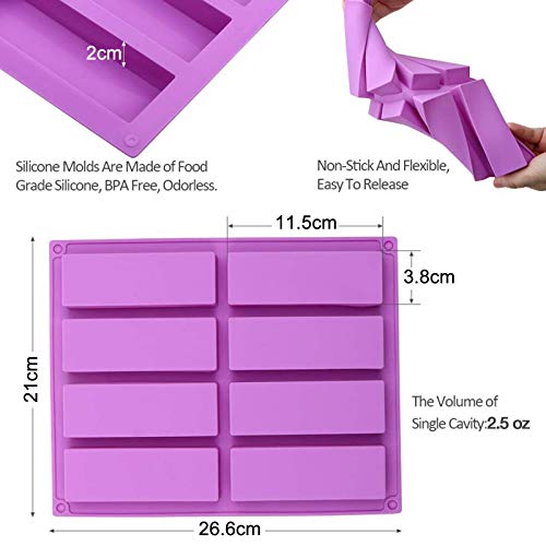 ♥ 【Confezione e dimensioni】 È possibile ottenere 2 stampi in silicone rettangolari grandi con 8 cavità in viola. La dimensione di ciascuna forma dello stampo a 8 cavità è 26,8 cm x 21 cm x 2 cm. Dispone di 8 pozzetti e la dimensione di una singola cavità è di 11,5 x 4 x 2 cm.