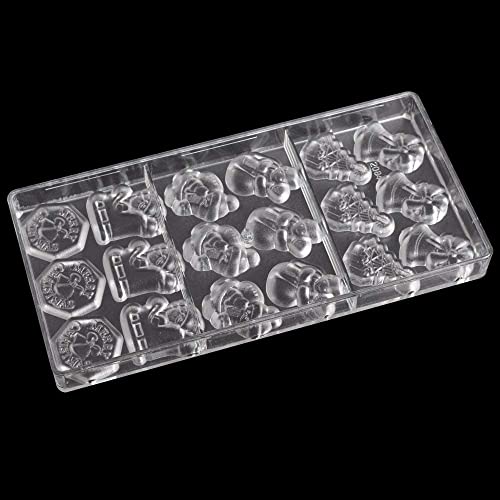 Stampo in policarbonato trasparente a 18 fori per cioccolatini a forma di campana di Natale, pupazzo di neve, gelatina, caramelle, caramelle, pasta di zucchero, fondente, strumenti di cottura al