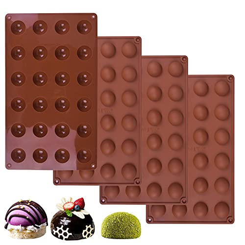 Stampo Semisferico, Stampo in Silicone Semi-sfera Set, Stampo Mezza Sfera, Stampi per Cioccolato Praline Torte, Gelatine, Mousse Cupola Tartufo (24 Fori x 4 Pezzi)