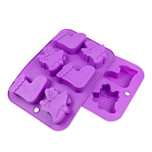 Stampo in silicone con campane e calza di Natale, Torta, Muffin, Brownie, cubetti di ghiaccio, cioccolatini e altri naschereien im Design Natalizio, perfetto per la celebrazione colore: viola