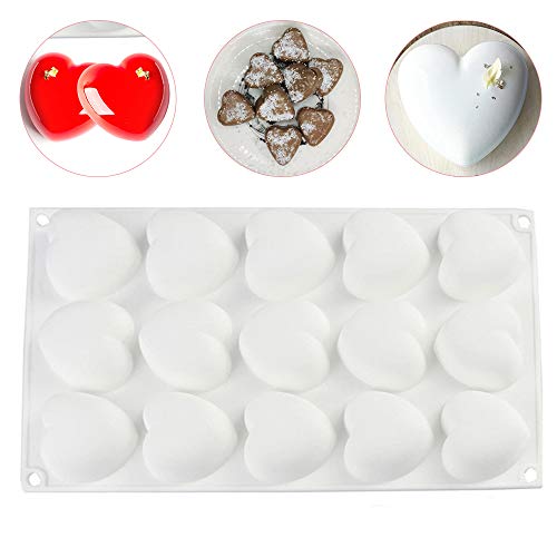 Stampo in Silicone a Forma di Cuore, Stampo Antiaderente per Alimenti Riutilizzabile Stampo in Silicone Fai-da-te a Rilascio Facile per Gelatina di Cioccolato Caramelle (Quindici buche)
