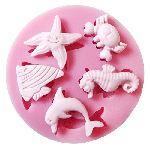 1 stampo in silicone a forma di granchio, delfino, cavalluccio marino, pesce, ideale per la progettazione di torte di compleanno per bambini