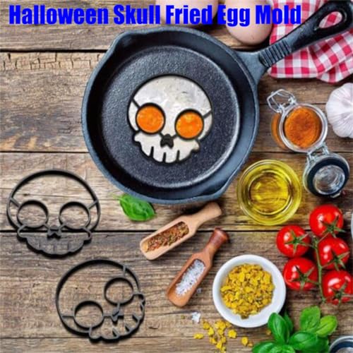 Stampo in silicone per uova fritte a forma di teschio di Halloween, stampo creativo per omelette, set di stampi per uova fritte per la colazione, riutilizzabili, anelli in silicone antiaderenti per