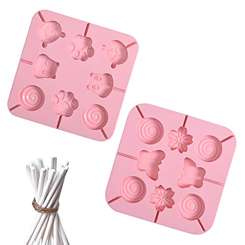 Stampo in Silicone per Lecca-Lecca Stampo in Silicone Riutilizzabile per Lecca-Lecca con 20 Bastoncini di Carta per Lecca-Lecca per Dolci, Torte, Gelatina al Cioccolato o da Forno, 2 Pezzi
