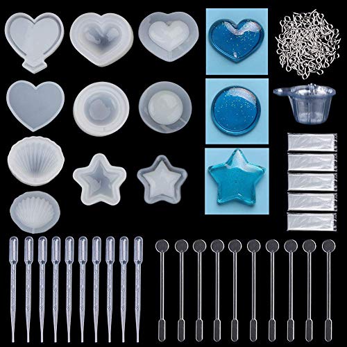 Stampo Silicone 145 Pezzi, 5 Pezzi Cuore Inizio Conchiglia Il Giro di Silicone Modelli DIY Stampi + 100pz Gancetti Vite+ 10 Tazze di plastica monouso+ 10 agitatori+ 10 contagocce+10 Guanti monouso
