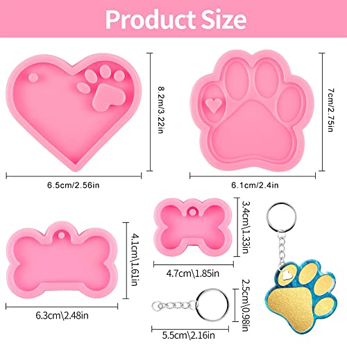 Stampo Silicone Resina, Stampini Resina, 4 Pezzi Stampi in Silicone per Resina, Stampo in Resina, Stampi in Silicone a Forma Di Osso Di Cane Set Con Portachiavi, Stampi per Portachiavi in Resina