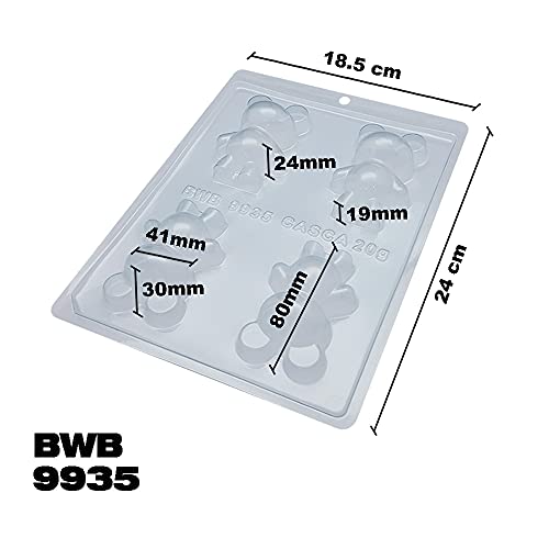 ✅【Progettazione】BWB 9935 Stampo 3 parti | Forma: Orsetto piccolo | Peso: guscio 50 g/unità | Dimensioni: 80 x 41 x 30 mm/unità | Cavità: 4 | Tipo: Forma speciale 3 parti | Gruppo: Dolci gourmet | Materiale: Plastica PET Tridimensionale | Colore: Trasparente | Prodotto da: BWB Imballagens Brasile