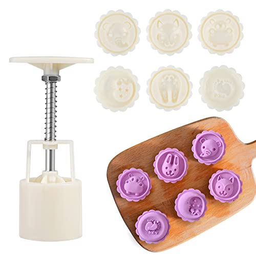 Stampo con 6 Timbri per Animali - Il set di stampi per mooncake Pwsap viene fornito con 1 stampo con 6 stampini per biscotti animali, coniglio, luna, piedi di bambino, ippopotamo, volpe, elefante, appositamente progettato per il tuo festival di metà autunno, puoi facilmente realizzare bellissime torte lunari con stampi, anche se sei un nuovo fornaio