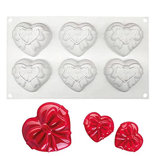 Stampo per torta in silicone Bakeware Dessert Mousse Stampo per candela di sapone fai-da-te, 6 fori Cuoricon fiocchi