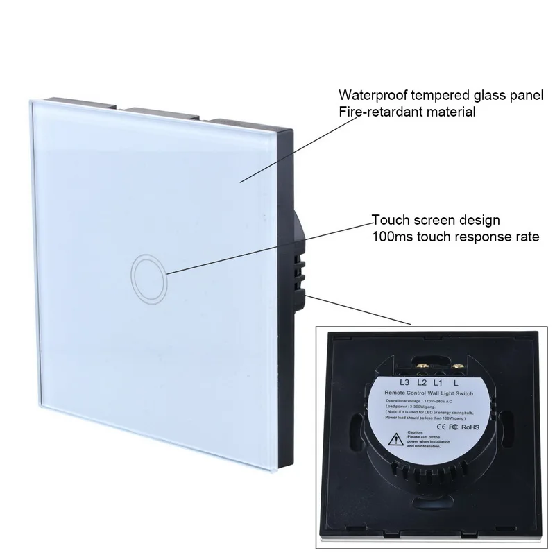 Stanard Touch White Crystal Glass Panel 1 Gang 1 Way Touch, Light Wall Touch Screen 220V
