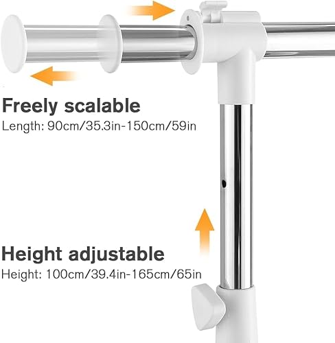 Porta abiti estensibile bianco: lunghezza estensibile, asta orizzontale estensibile in alto da 89,9 cm a 149,9 cm. Barra appendiabiti superiore con tubo rotondo integrato e fermi su ogni lato per evitare che i vestiti cadano. Regolazione telescopica verso l'alto e verso il basso, selezionare l'altezza desiderata.