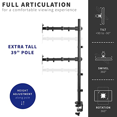 VIVO STAND-V012T - Supporto da scrivania per doppio monitor con asta verticale da 99 cm, bracci estesi completamente regolabili, per 2 schermi fino a 27"