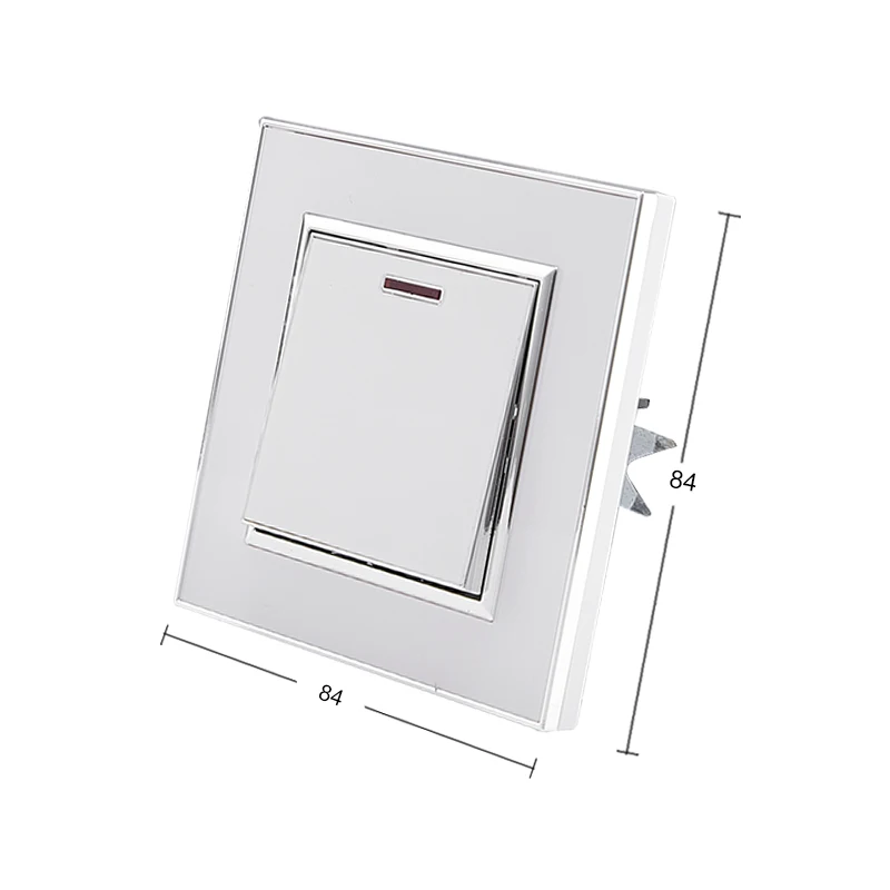 EU Standard Acrylic Wall Switch Luxury White Push Power SwitchWith light, 1 Gang 1 Way Plastic Wall Switch FYKB-03