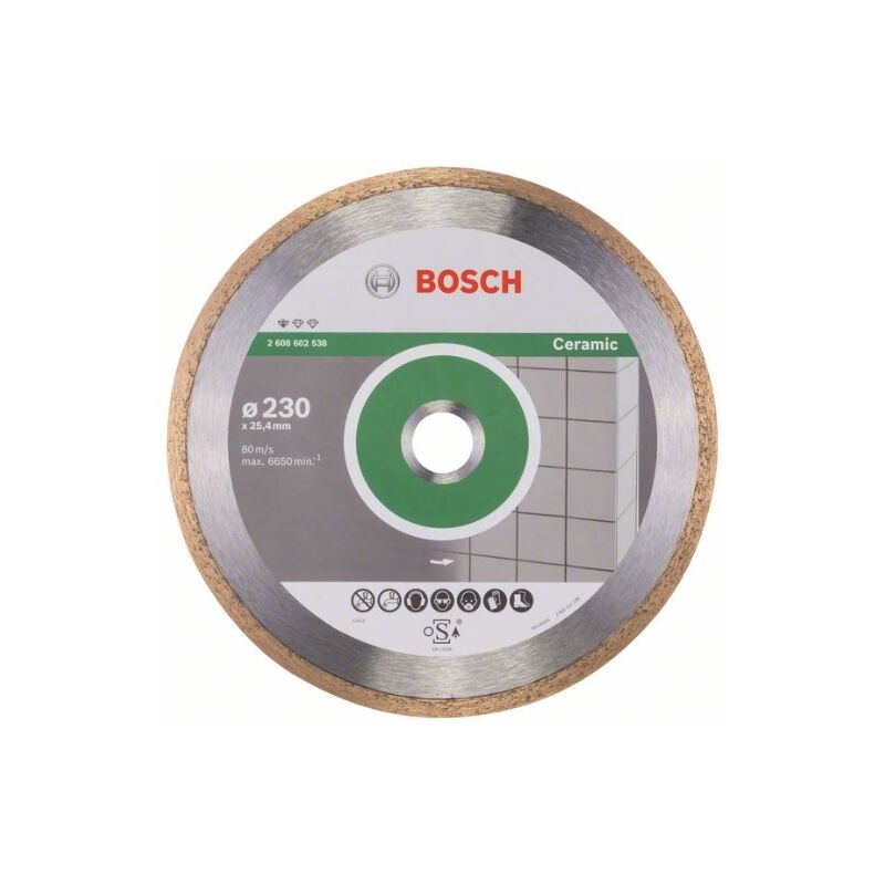 Vantaggi Tagli affidabili nelle piastrelle Il bordo di taglio continuo de raggiunge risultati precisi su tutti i tipi di piastrelle de. Standard elevati de qualità garantita dal centro specializzato in diamanti de Bosch in Svizzera Piastrelle dure Specifiche Specifiche:230 x 25,40 x 1,6 x 7 mm: Diametro mm:230: Diametro delforo mm:25,40: Larghezza of taglio mm:1,6: Altezza del segmento mm:7: X-LOCK:No: materiali lavorabili incluso dettaglio:Pietra Gres ceramico fine: SOL Data:02.12.2010: Nuovo:No: Unità perpallet:600: Peso lordo:0,48:kg Peso netto:0,48:kg Lunghezza:270:mm Altezza:5:mm Larghezza:240:mm Informazioni aggiuntive Tagli sicuri nelle piastrelle Il disco da taglio de diamantato Standard per ceramica garantisce tagli sicuri nelle piastrelle. Tagliente continuo de per risultati precisi su tutti i tipi di piastrelle de Elevati standard de qualità garantita dal centro diamantato specializzato deBosch in Svizzera