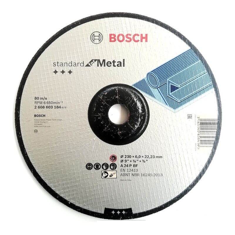 BOSCH STANDARD FOR METAL MOLA MOLE ABRASIVE DISCO DISCHI DA TAGLIO PER METALLO Vantaggi del prodotto Mole da taglio Standard for Metal Mola da taglio Standard for Metal per il taglio del metallo con un'elevata durata Abrasivi ceramici incapsulati per un'elevata resistenza all'usura e una qualità costante. Lo spessore della mola prolunga notevolmente la durata delle prestazioni Il tessuto in fibra di vetro ad alta precisione assicura elevata stabilità, resistenza e sicurezza durante il taglio Dettagli prodotto Le mole da taglio Standard for Metal presentano una durata eccezionale per il taglio di materiali impegnativi. Grazie agli abrasivi ceramici incapsulati, la mola è altamente resistente all'usura e garantisce una qualità costante. Lo spessore della mola ne prolunga notevolmente la durata delle prestazioni. Il tessuto in fibra di vetro ad alta precisione della mola da taglio Best for Metal fornisce un'elevata stabilità, resistenza e sicurezza durante il taglio. Usare questa mola