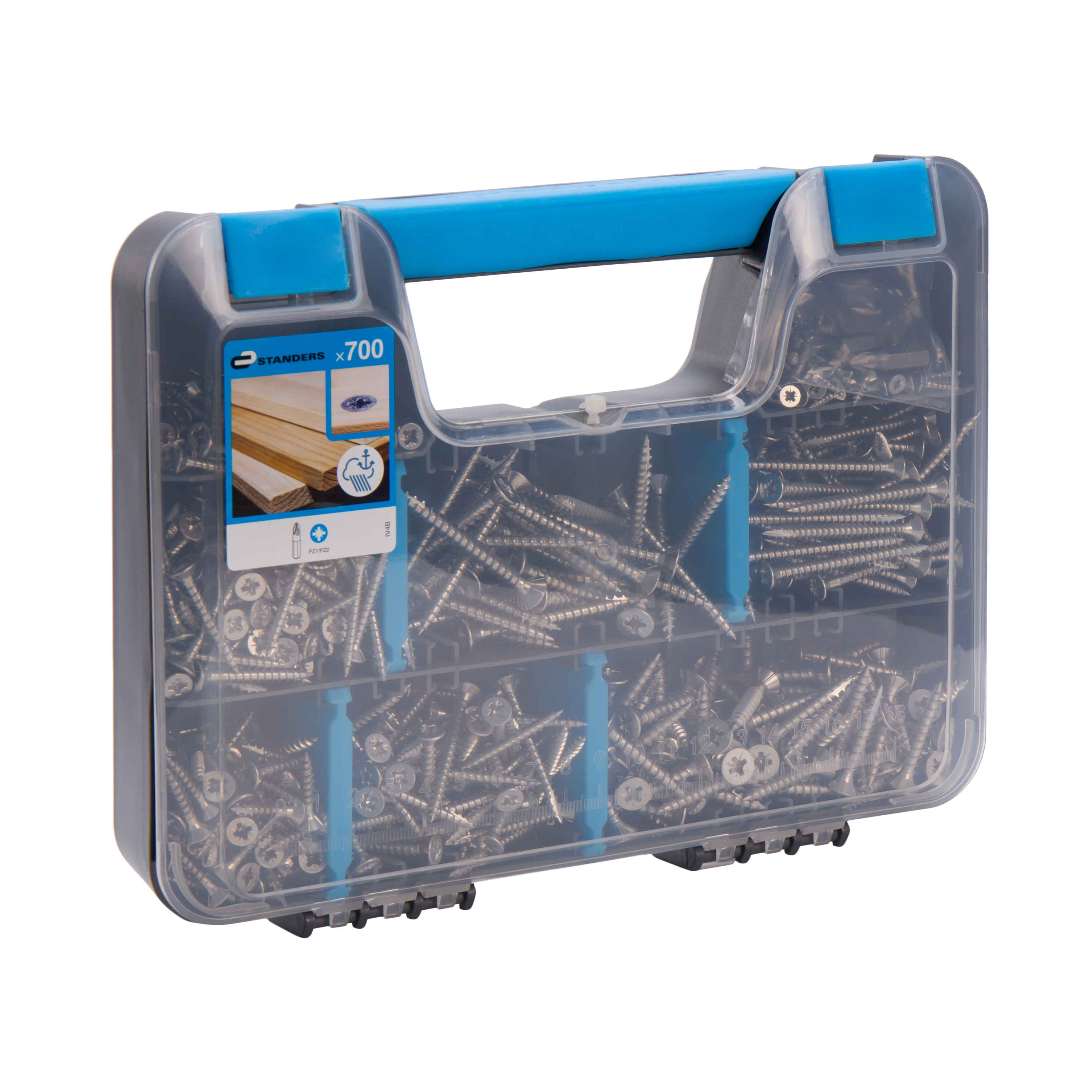 Set di viti assortite in acciaio zincato, 700 pezzi. Indicata per tutti i tipi di muro