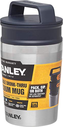 Stanley Adventure Series Shortstack Travel Mug .23L Stainless Steel 18/8 Double-Wall Vacuum Insulation Water Bottle Leakproof + Packable Dishwasher Safe Naturally Bpa-Free, Metallo, 0.23L