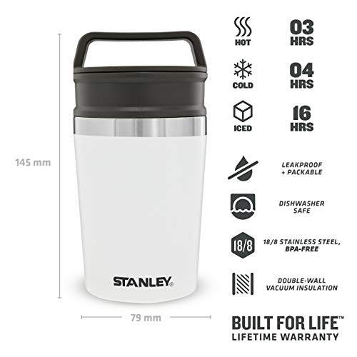 Stanley Adventure Shortstack Travel Mug 0,23L / 8OZ Polar White, Thermos caldo e freddo, Tazza da viaggio in acciaio inossidabile senza BPA