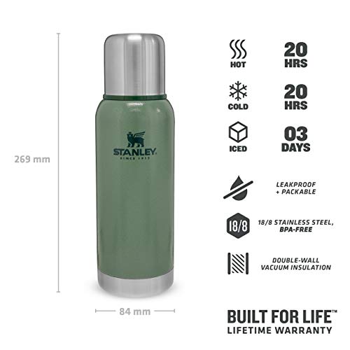 Stanley Adventure Stainless Steel Vacuum Bottle 0,73L / 25OZ Hammerton Green, Thermos per alimenti in acciaio inossidabile senza BPA, Mantiene il caldo o il freddo per 20 ore