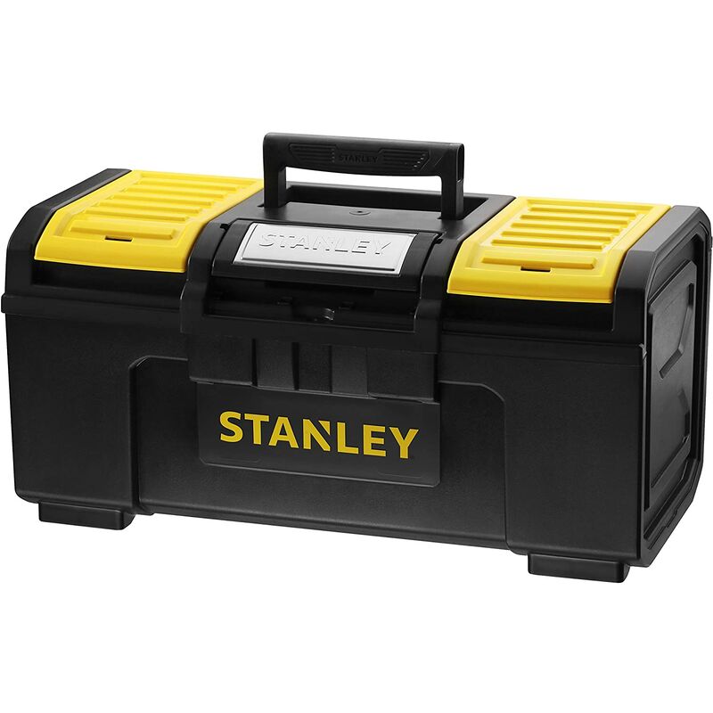 Vaschetta interna asportabile Organizer porta minuteria nel coperchio Dimensioni: 48.6 x 26.6 x 23.6 cm Cassetta porta utensili con sistema di apertura chiusura ad una mano