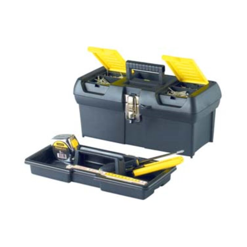Cm.32,2x13,5x17,7h. (1-92-064) in polipropilene, 2 contenitori organizer inserito nel coperchio (con apertura indipendente dalla cassetta) - vaschetta estraibile - chiusura singola in metallo - manico a scomparsa Categoria merceologica: Portautensili e portaminuterie - Utensili manuali - Cassette e valigette portautensili