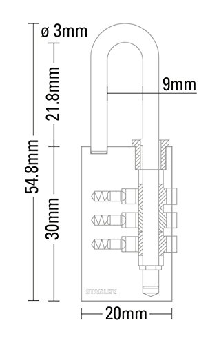 STANLEY Lucchetto a Combinazione 20 mm a 3 Cifre, S742-050,Corpo Ottone Massiccio, Cassa E Ingranaggi in Ottone Massiccio, Arco Acciaio Cementato, per Armadietti Palestra, Cassette Sicurezza