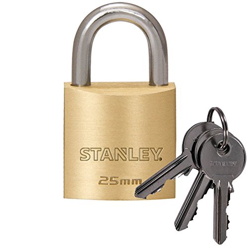 Stanley Lucchetto Arco Standard in Acciaio Cementato, Corpo in Ottone Massiccio 25 mm, 3 Chiavi, S742-029