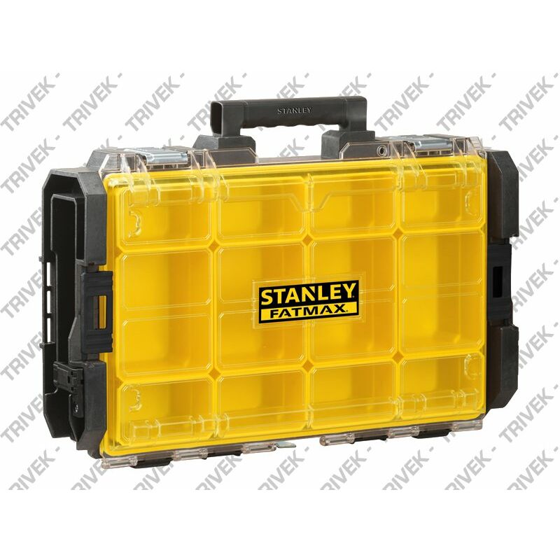 Prodotto modulare agganciabile e sovrapponibile. Organizer con 12 vaschette (4 grandi + 8 piccole). Coperchio trasparente, maniglia superiore. Dimensioni: 54,3x34,7x11,8 cm