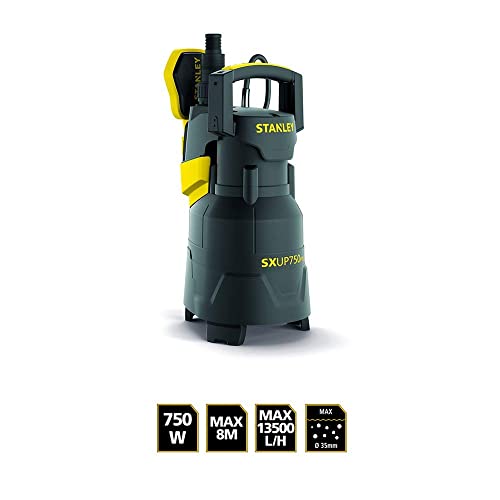 Stanley Pompa Immersione SXUP750PTE per Acque Chiare e Scure (750 W, Portata max. 13.500 l/h, Prevalenza max. 8 m)