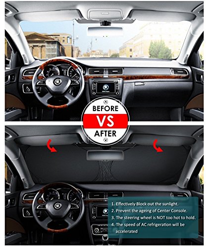 ✅ [FACILE DA USARE] Il parasole auto parabrezza vanta di rapida istallazione, Metti e Togli in pochi secondi senza ventosa in una manciata secondi.