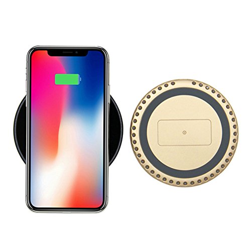 Starall Wireless Mini Caricatore Pad Rotondo x Base di Ricarica Wireless Qi Piastre per iPhone/8 Plus, Samsung Galaxy S8/S9 con indicatore di respirazione Lampada Gold