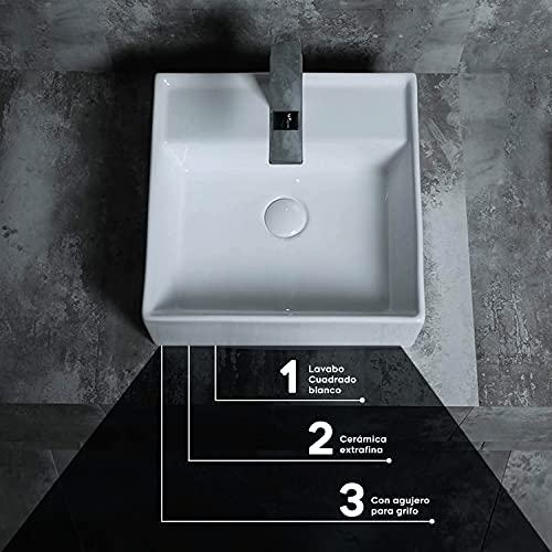 RESISTENTE: Questo lavabo quadrato da appoggio in ceramica extra-sottile si distingue per il suo spessore, la durata e la resistenza ai graffi. Questi lavabi in ceramica sono più facili da pulire e hanno un'alta resistenza a diversi prodotti di pulizia.