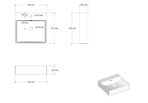 DIMENSIONE IDEALE: Questo lavabo da appoggio Starbath Plus ha la dimensione ideale per inserirsi nello spazio giusto e aggiungere un tocco estetico al tuo bagno. Dimensioni: 41x41x12 cm (larghezza - profondità - altezza). Il foro di scarico di questo lavabo è di 45 mm, quindi il foro del mobile o del piano di lavoro deve essere leggermente più grande.