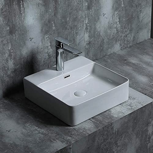 Starbath Plus - Lavabo in ceramica bianca - Forma rettangolare - Con foro per rubinetto - Dimensioni 41 x 41 x 12 cm - Ideale per piani d'appoggio in bagno e mobili da toilette