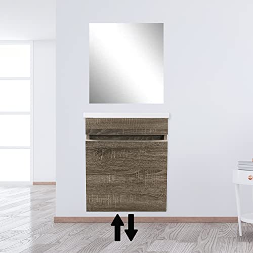 STARBATH PLUS - Set di mobili da bagno sospesi in MDF con lavabo in resina e specchio - Lavabo sospeso - Mobili da bagno con lavabo - 40 x 22 cm