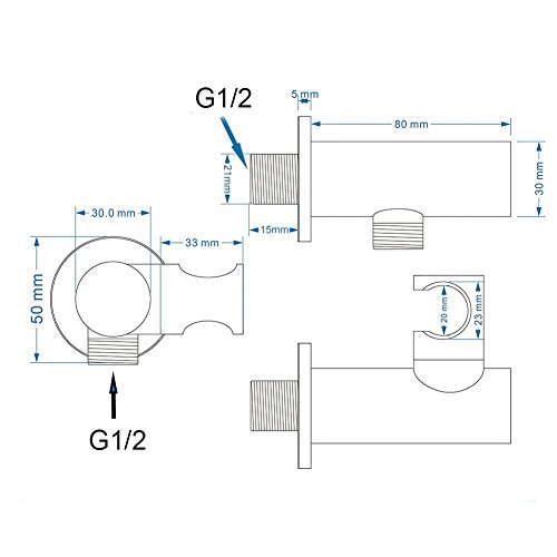 Design unico e moderno: La supporti per doccia ottone titolare utilizza due prese, lei può indossare il flessibile doccia e soffione doccia a mano, molto pratico e conveniente per voi. Ideale per idromassaggio o al raggiungimento di determinate zone del corpo.