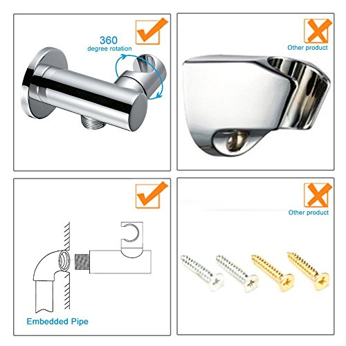 360 gradi la tecnologia regolabile: È possibile ruotare l'angolo di questo supporto doccia regolabile facile per le vostre esigenze quotidiane quando si fa la doccia, perni per posizionare una doccetta ad un angolo desiderato.