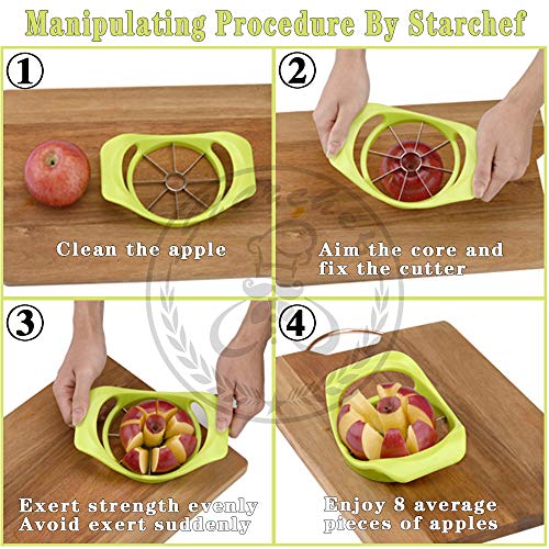 Starchef Mela Frutta Cutter, Affettatrice, Divisore, Corer, Affettatrice per Mele, Pere, Grande (8 Fette, Verde)